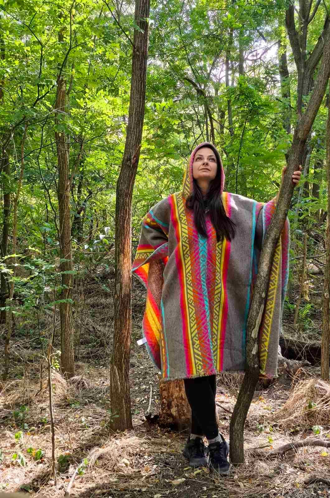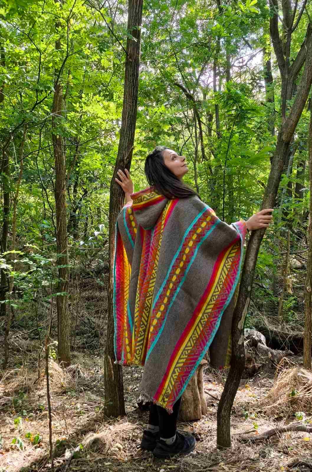 Преоткрийте топлината и уюта на естествените материали с това уникално пончо от 100% овча вълна, идваща от сърцето на Еквадорските Анди.