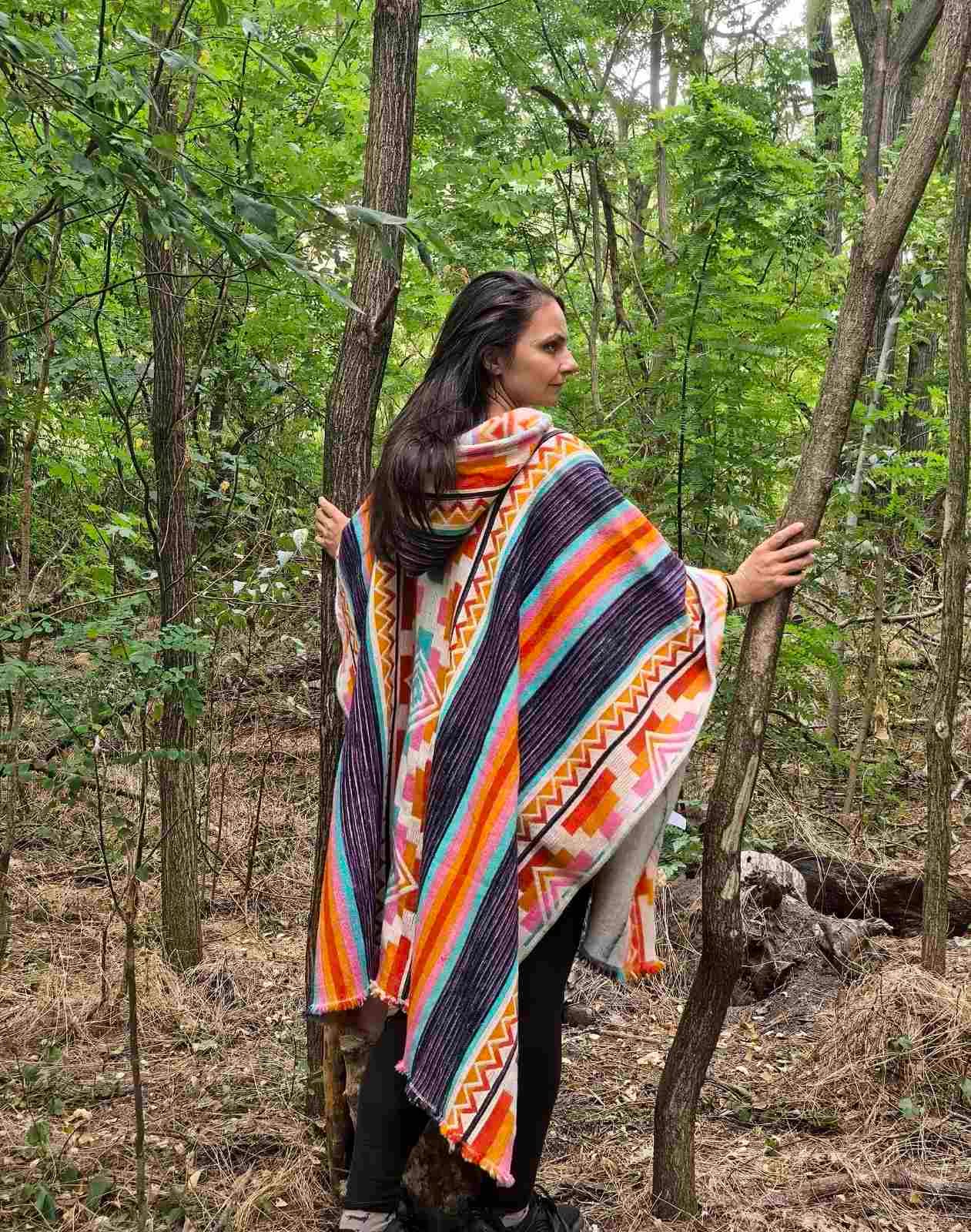 Преоткрийте топлината и уюта на естествените материали с това уникално пончо от 100% овча вълна, идваща от сърцето на Еквадорските Анди.